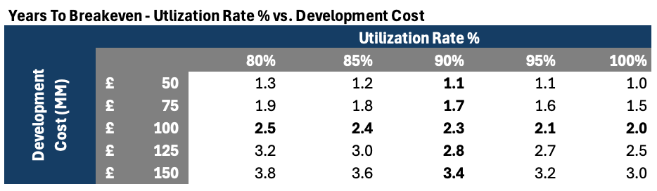 Given all of the above context, it is fair to ask if Pophouse or someone else can reproduce the financial success of ABBA Voyage with other artists. One thing that will hopefully help is lowering the cost to develop a similar-type of avatar show. For example, we estimate that the time to breakeven for a comparable project can be reduced by ~1 year for each £50 million reduction in development costs.