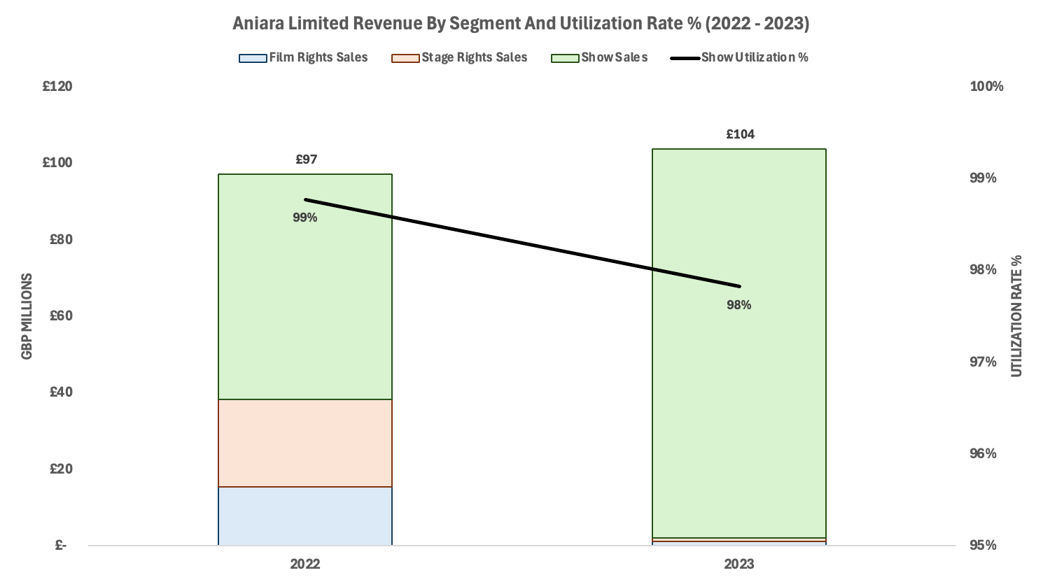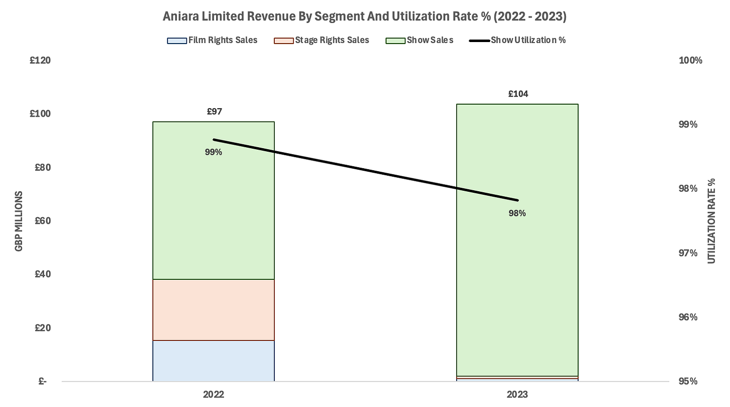 The project generated ~98% of its revenue from the show in 2023, with ~2% from film rights and stage rights.
