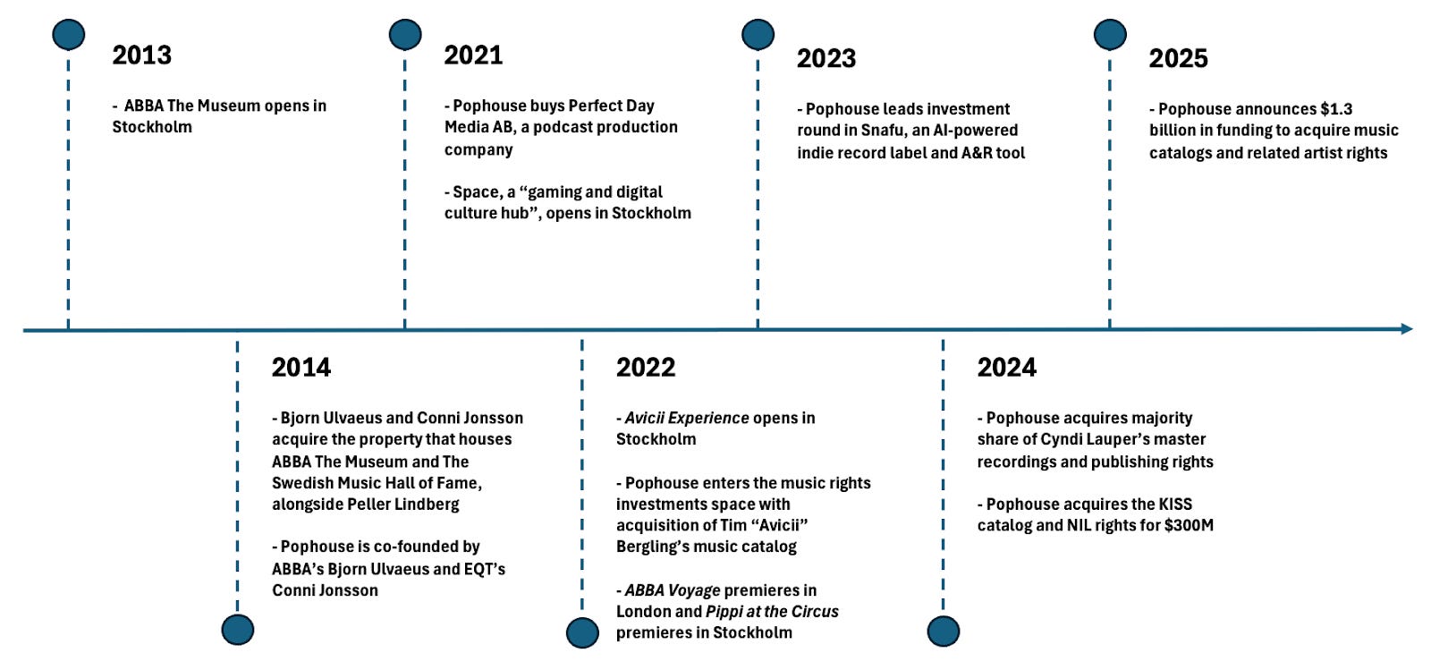 4) Concentrated Bets: Another one of Pophouse’s differentiators is its concentrated approach to rights acquisitions. Per Sundin has said in interviews that Pophouse plans to acquire eight to ten catalogs in its fund. As mentioned, in April 2025, it was also reported that Pophouse had “already deployed 30% of its fund through four deals with artists such as KISS, Cyndi Lauper, and Swedish electronic dance music icons Avicii and Swedish House Mafia.”